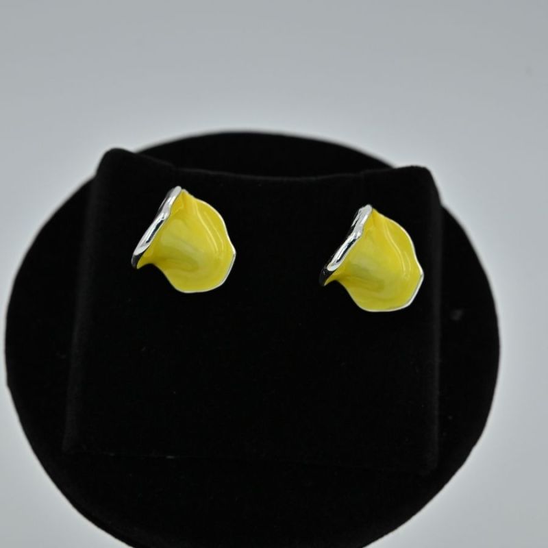 Yellow Enamel Petal Stud Earrings (or Leaf Drop Studs). A vibrant, nature-inspired fashion design for playful accessorizing.