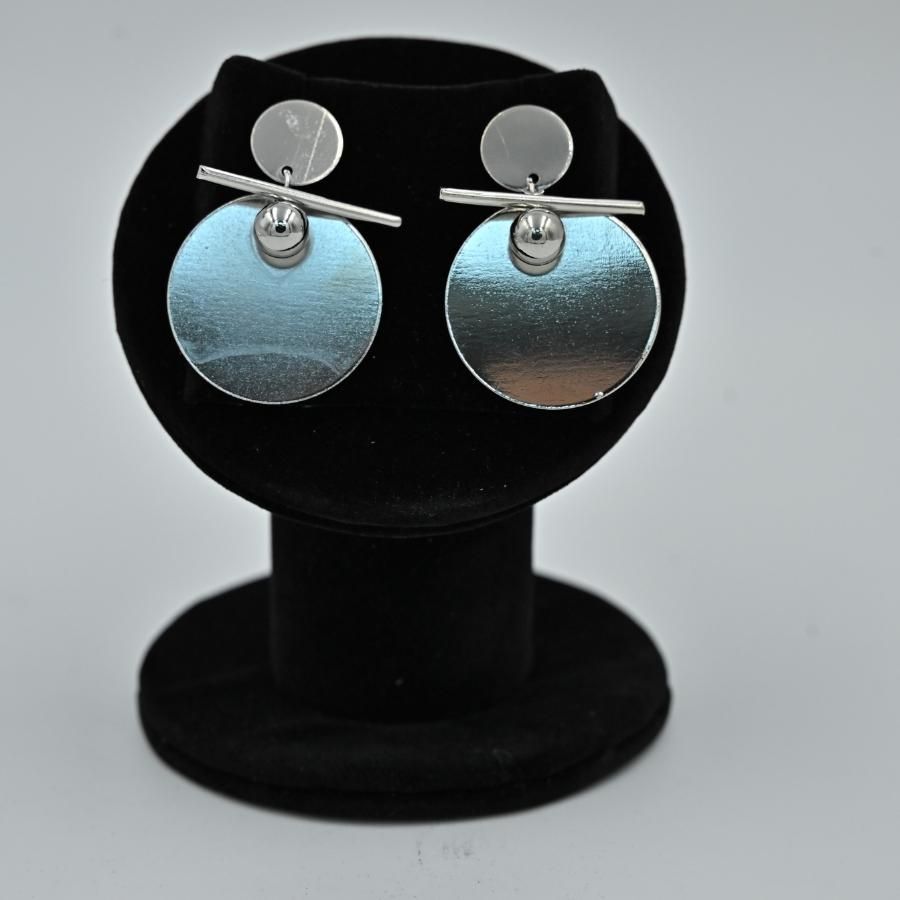 Bar Disc Drop Earrings or Kinetic Bar Stud Earrings. A trendy, architectural style popular in contemporary fashion.