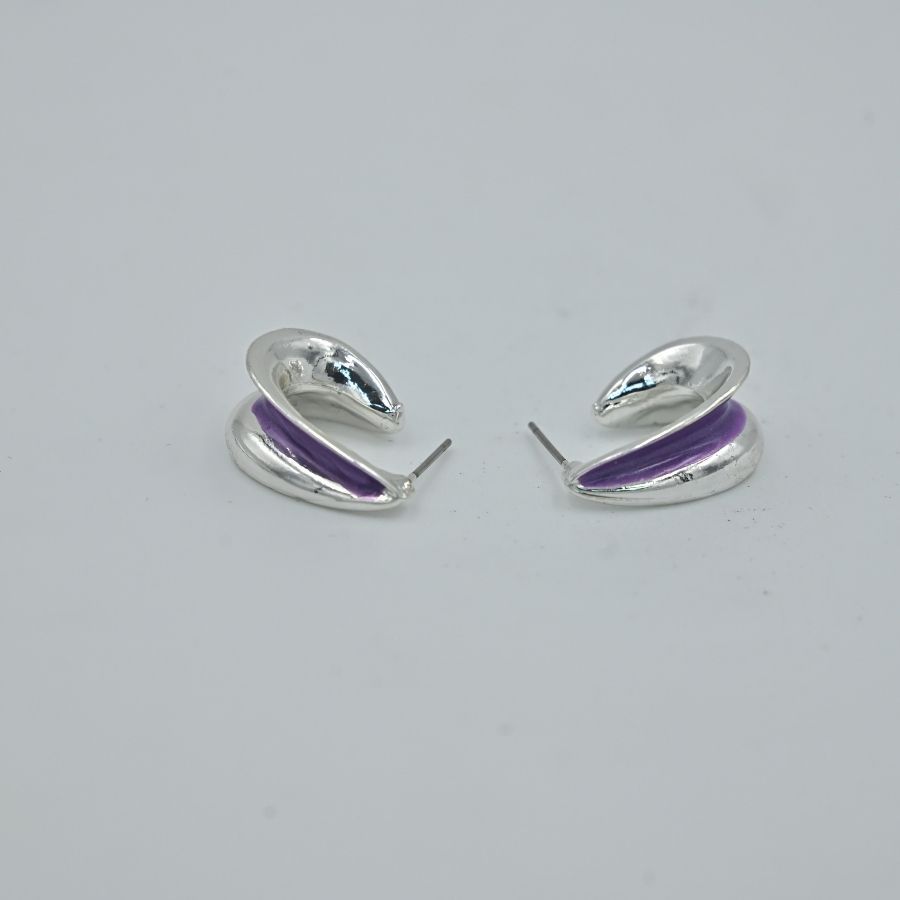 Purple Enamel Cuff Earrings or Twisted C-Shape Hoop Earrings. Common in fashion as ear cuffs or modern hoops with color pop.