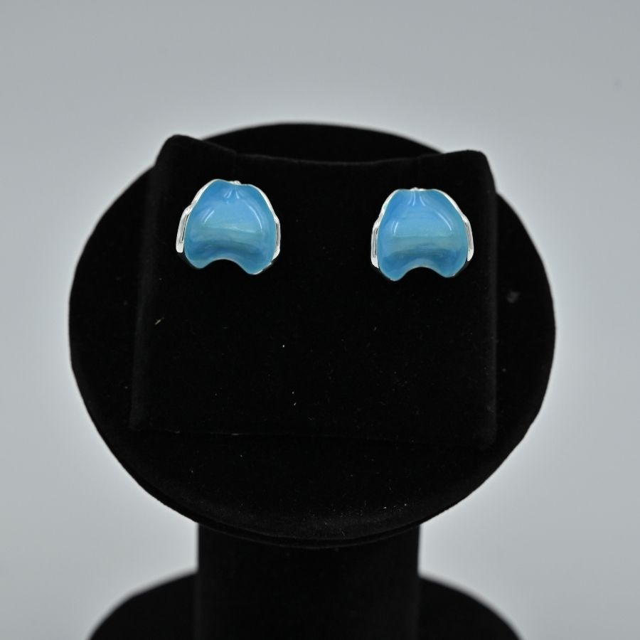 Blue Enamel Heart Stud Earrings. A playful, colorful take on classic heart studs popular in fashion jewelry.