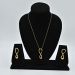 Elegant 22K yellow gold set with infinity (∞) pendant necklace and matching stud earrings, displayed on black mannequin stand.