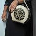 Turn heads with this exquisite round structured tote bag featuring intricate black-and-gold mandala embroidery on premium off-white vegan leather.
