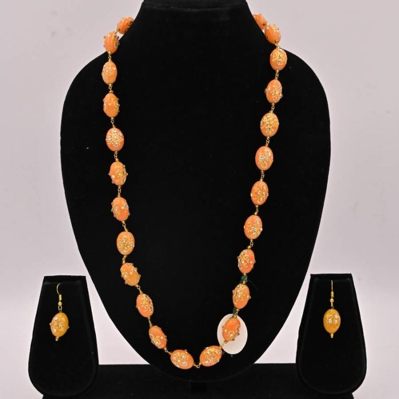 Orange Beaded Kundan Necklace Set