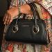Textured Black Vegan Leather Satchel Bag