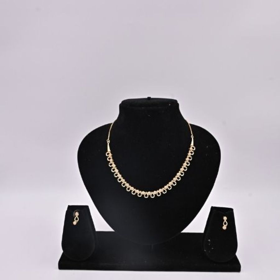 Elegant necklace featuring layered beads and chain details, complemented by simple drop earrings. Perfect for ethnic or fusion outfits.