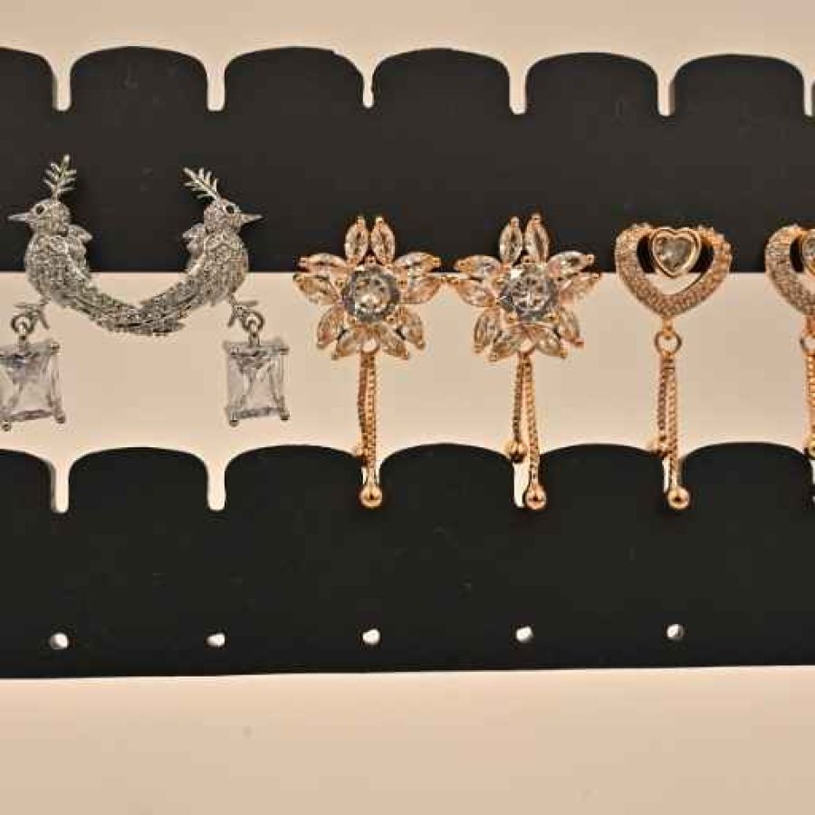 Decorative Peacock, Flower, and Heart Crystal Earrings