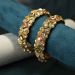 These are a pair of gold-plated bangles featuring vibrant multicolored uncut polki or kundan stones in red, green, blue, and clear tones arranged in geometric floral patterns. The intricate stone settings with meenakari enamel accents create a rich, royal Rajasthani or bridal aesthetic perfect for weddings and cultural celebrations. Adjustable design offers a comfortable fit for traditional Indian attire.