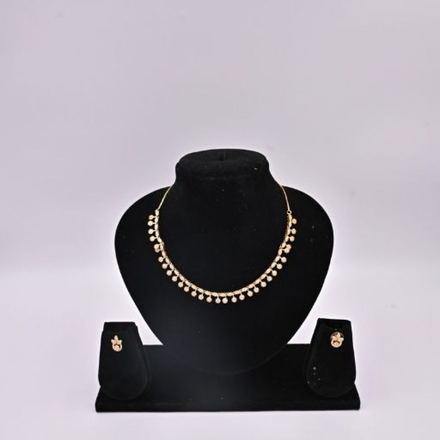 This delicate gold-toned choker necklace features small round polki or CZ pearls linked together in a classic single-strand design.