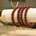 These are a set of four gold-plated bangles featuring rows of rich red ruby or coral beads paired with sparkling white pearl and rhinestone accents. The classic color contrast and textured design create a timeless, elegant ethnic look ideal for Indian weddings, parties, or daily stacking. Lightweight glass construction offers adjustable sizing for comfortable wear.